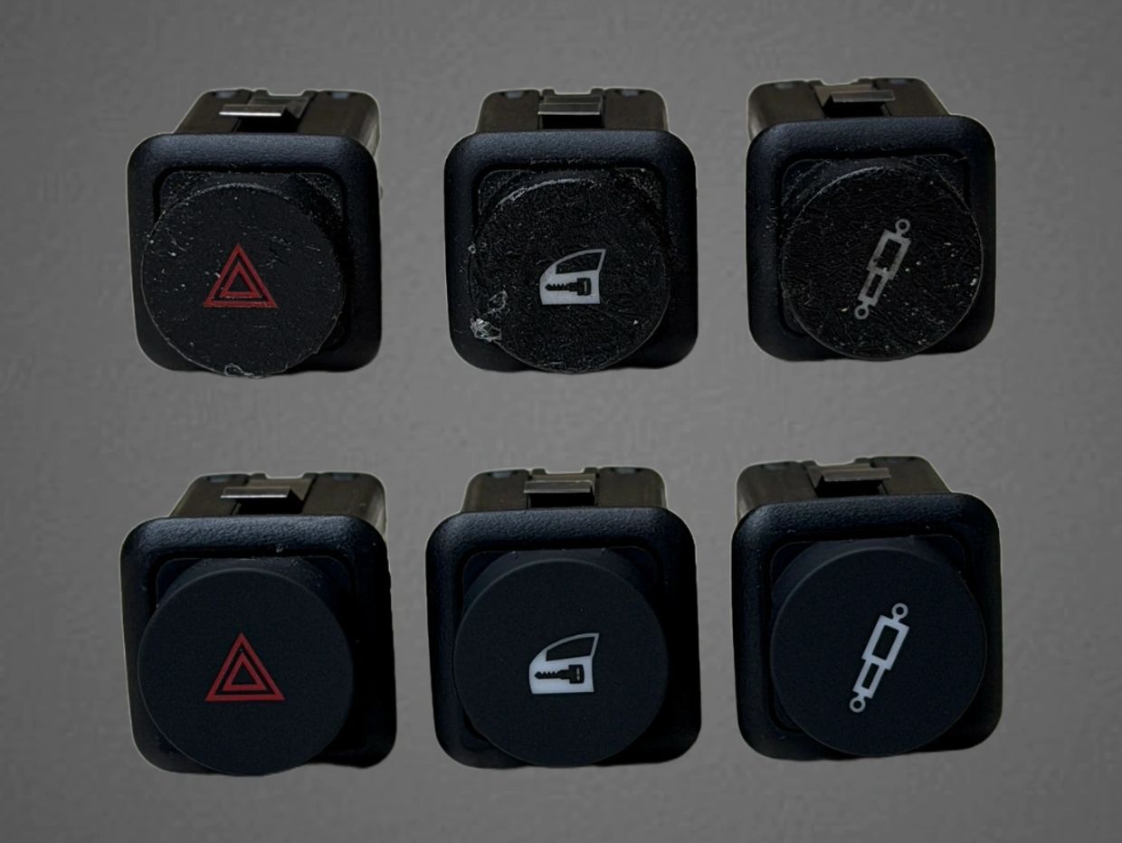 A selection of soft-touch interior components had deteriorated over time, primarily affecting switchgear and interior controls. The scope of work was defined carefully, with attention limited to the affected components in order to preserve originality throughout the interior.